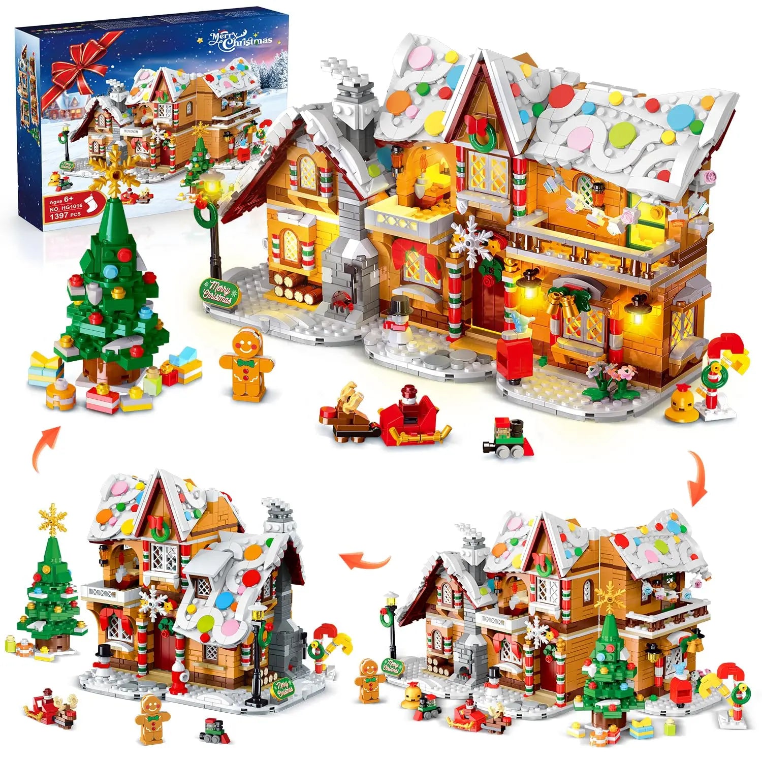 2025 Christmas Gingerbread House Building Toy with LED Light-3 Style Modes Block with Santa Xmas Tree Train for Adults Kids8+