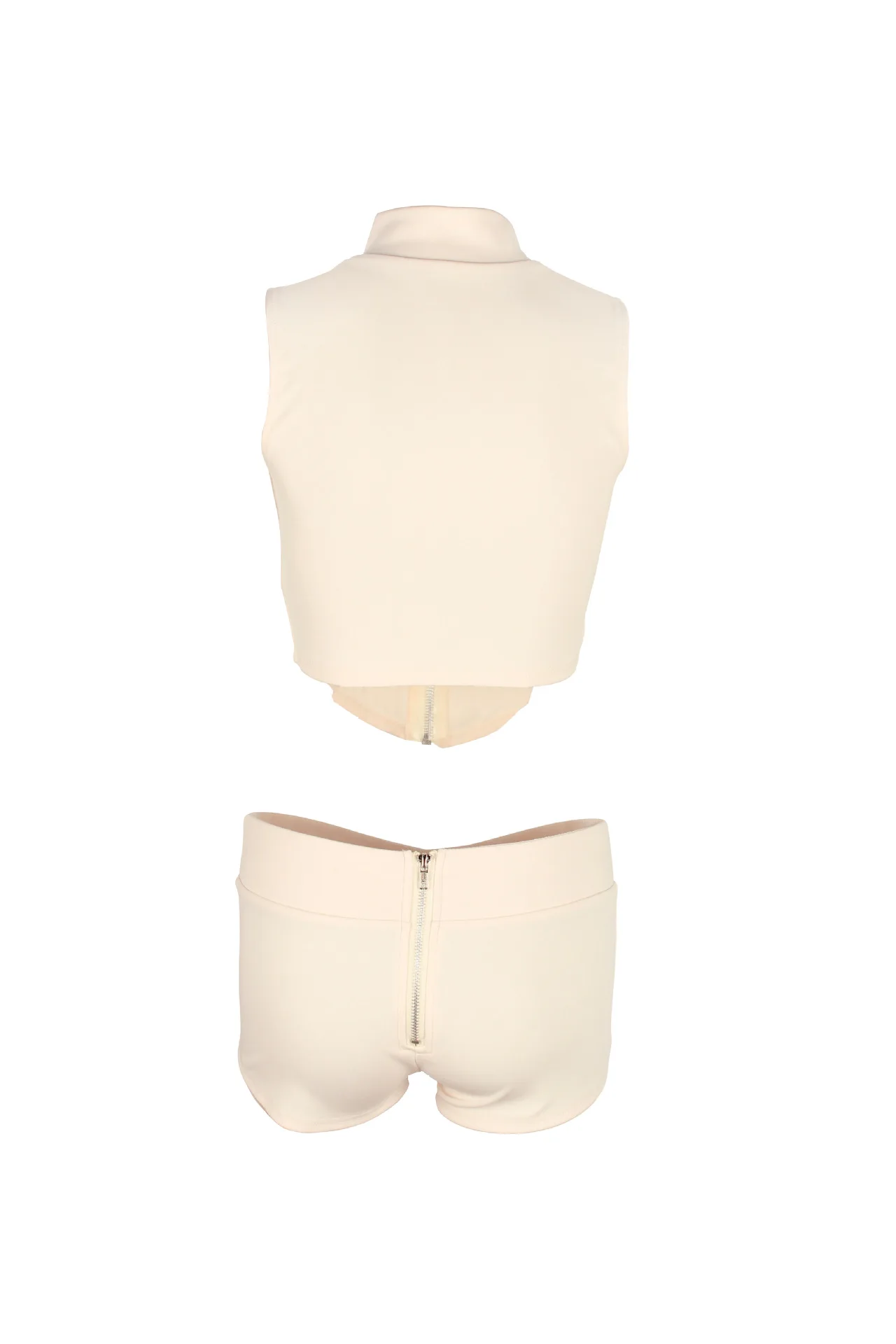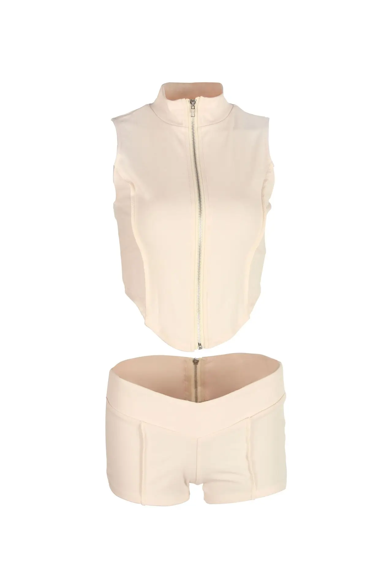 2025 Spring Summer Zip-Up Collar Set - Sleeveless Crop Top & High-Waist Shorts Club outfits for women 2025
