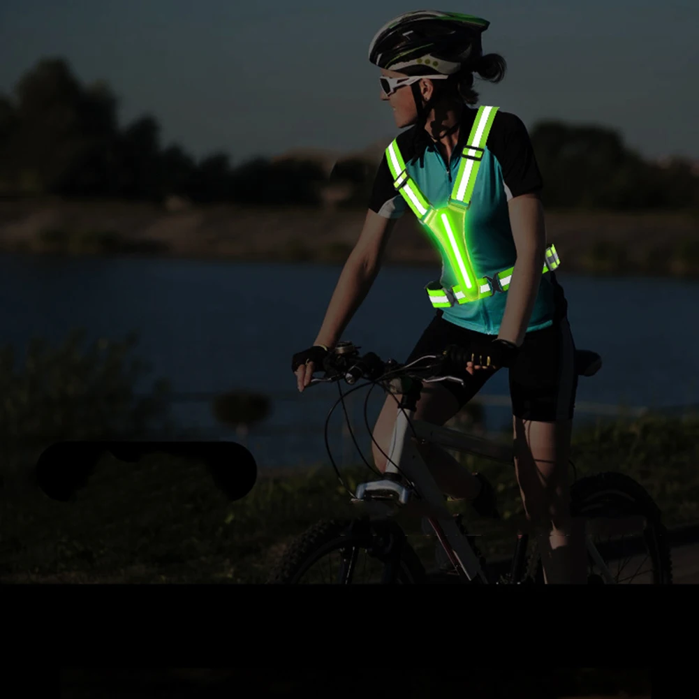 LED Cycling Security Vest Adjustable Reflective Night Running Vest High Visibility Night Running Riding Clothing for Kids Adults