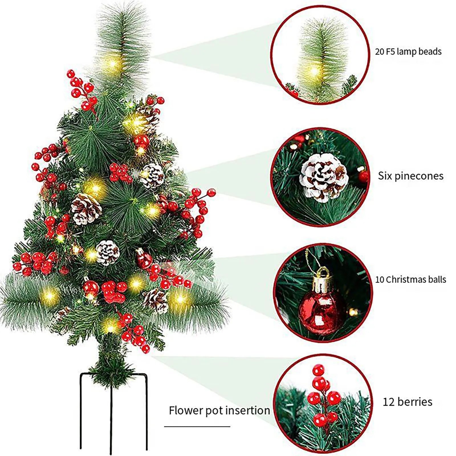 - Sturdy built-in ground stakes keep the trees secure outdoors or indoors, while cordless design gives you flexibility for placement at doorways or yards.
