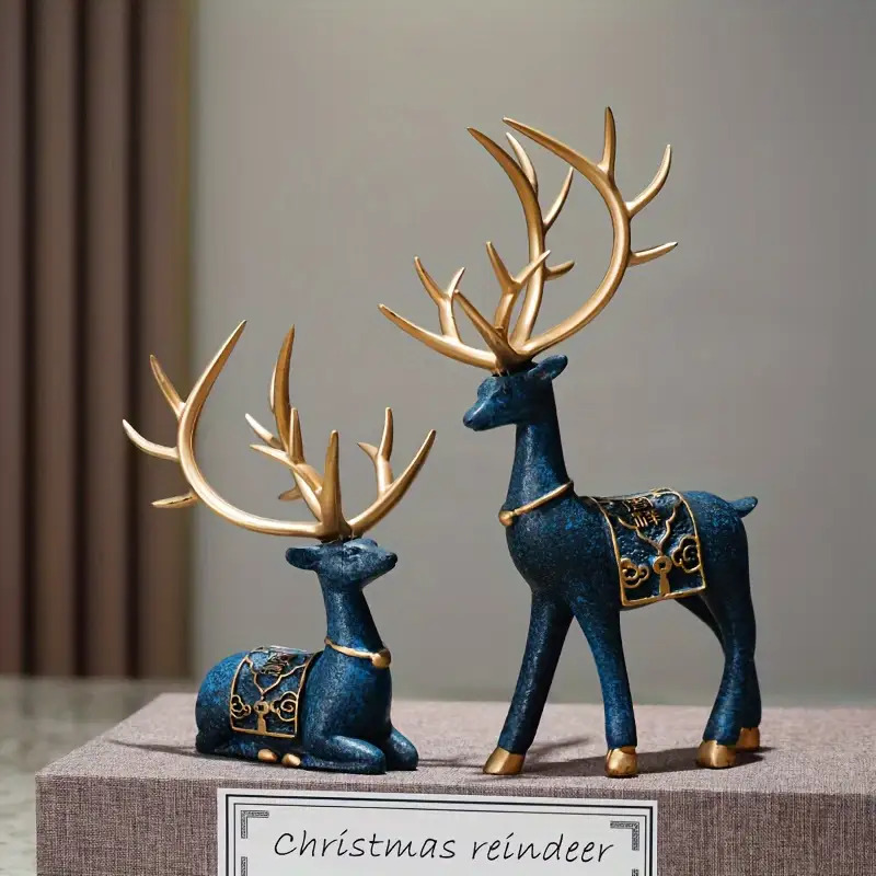 Reindeer Statue Set, Suitable for Collectible Holiday Theme Decoration of Christmas, Halloween, Easter, Thanksgiving- Indoor And Outdoor Universal Decorative Sculptures, Festive Animal Shaped Home Decor